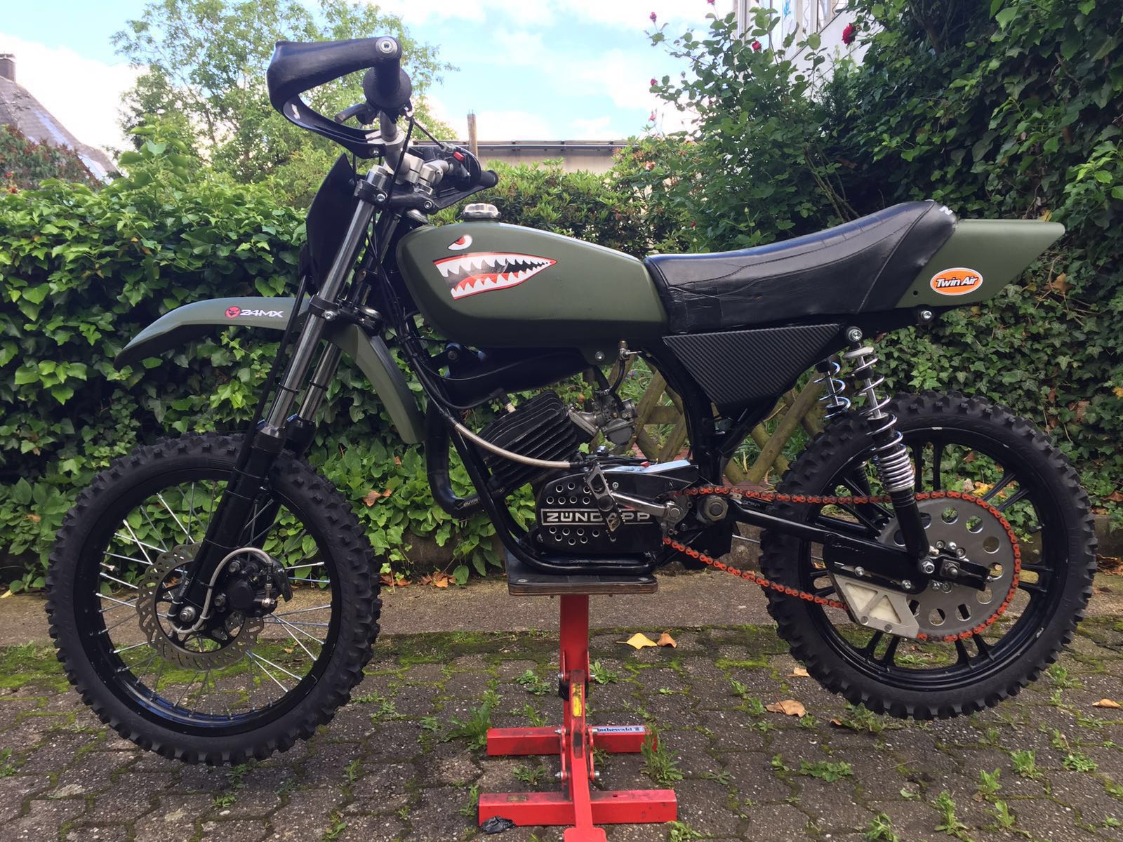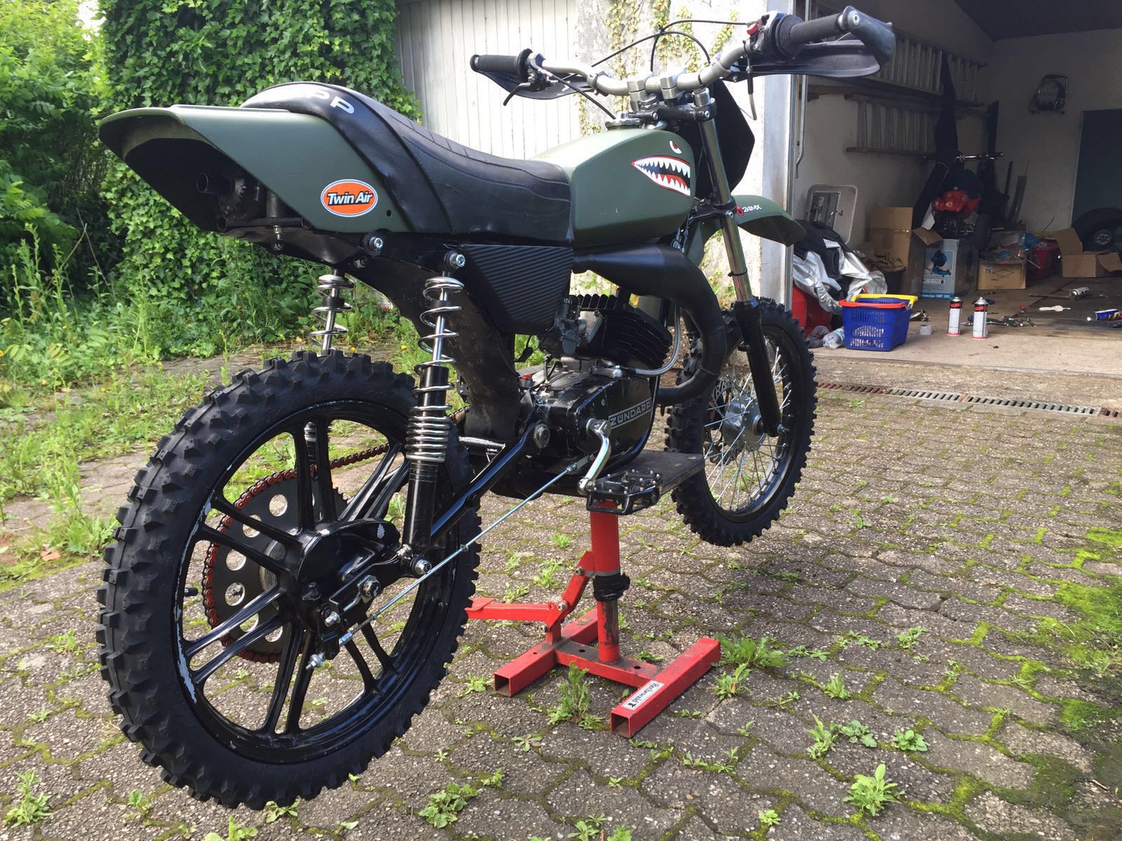 Wir haben die Suzuki Gabel verbaut und haben in den Betor Stoßdämpfern neue Federn drin.