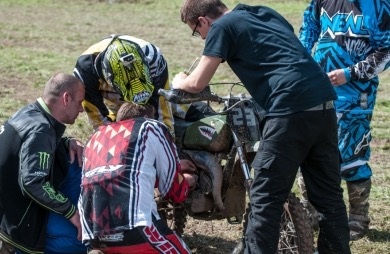 Allerdings war nach ein paar Minuten die Grasnarbe komplett weggefahren und die Strecke verwandelte sich, ähnlich wie das Fahrerlager, in ein Schlammbad.