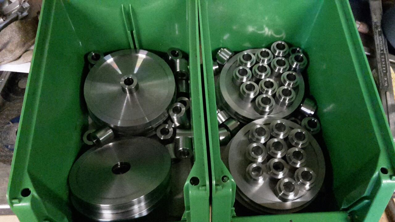 Abgesehen davon, das der Stahl nicht gerade billig ist, habe ich einen Bekannten eingespannt, der die Teile gedreht hat- sein Ebid dabei sind 3 Zahnradsätze.