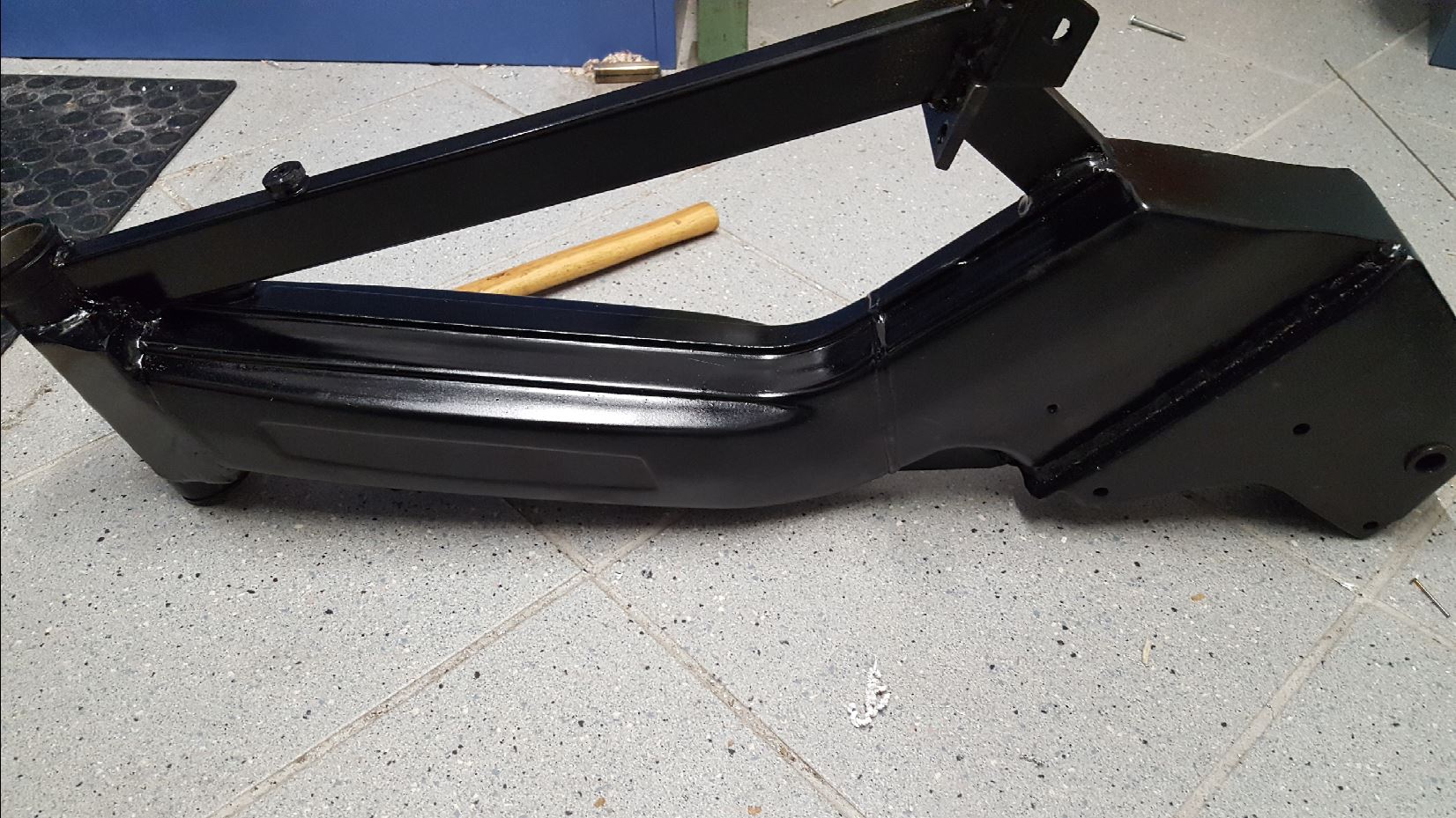 Nene- Motorhalter sind noch Original- allerdings hast du recht, das die nach links rübergewandert sind- neuer Schwingenbolzen ist auch richtig. Und- verstärkt ohne Ende... die haben jetzt pro Seite 6mm.
