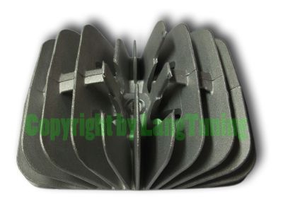 Als Kopf will ich einen Simson Fächerkopf nehmen . Den gibt es als Rohform und bietet genug Fleisch um dort eine Wechselkalotte einzufräsen. und die Stehbolzenabstände passen auch schon zum Morini hat also nen 50er abstand.