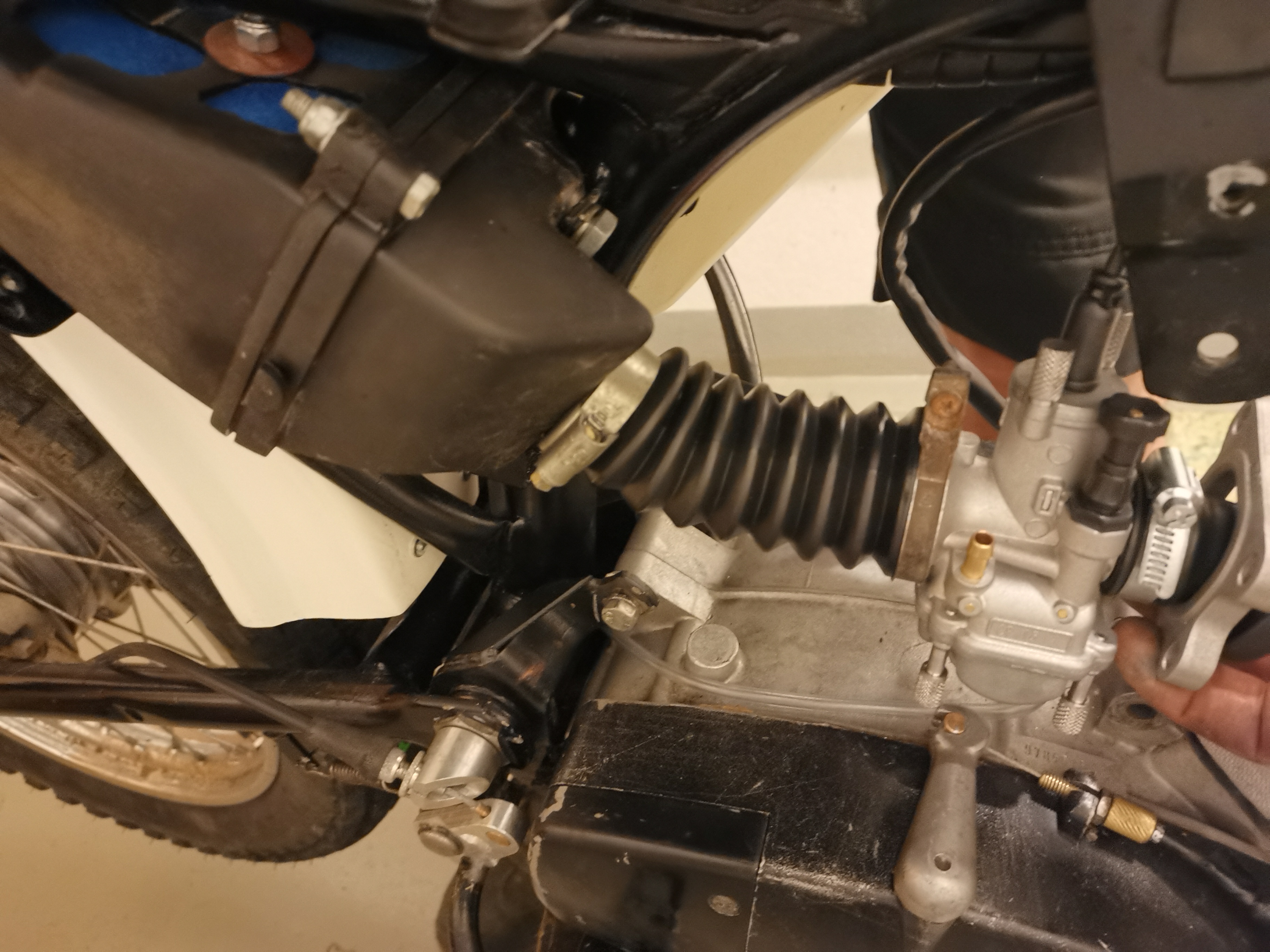 Ktm sx 85 Formula Vorderbremse mit yz 85 Felge, Daelim 125 Gabel, verlängerte IKON Dämpfer. Luftfilterkasten auf Matten umgebaut.