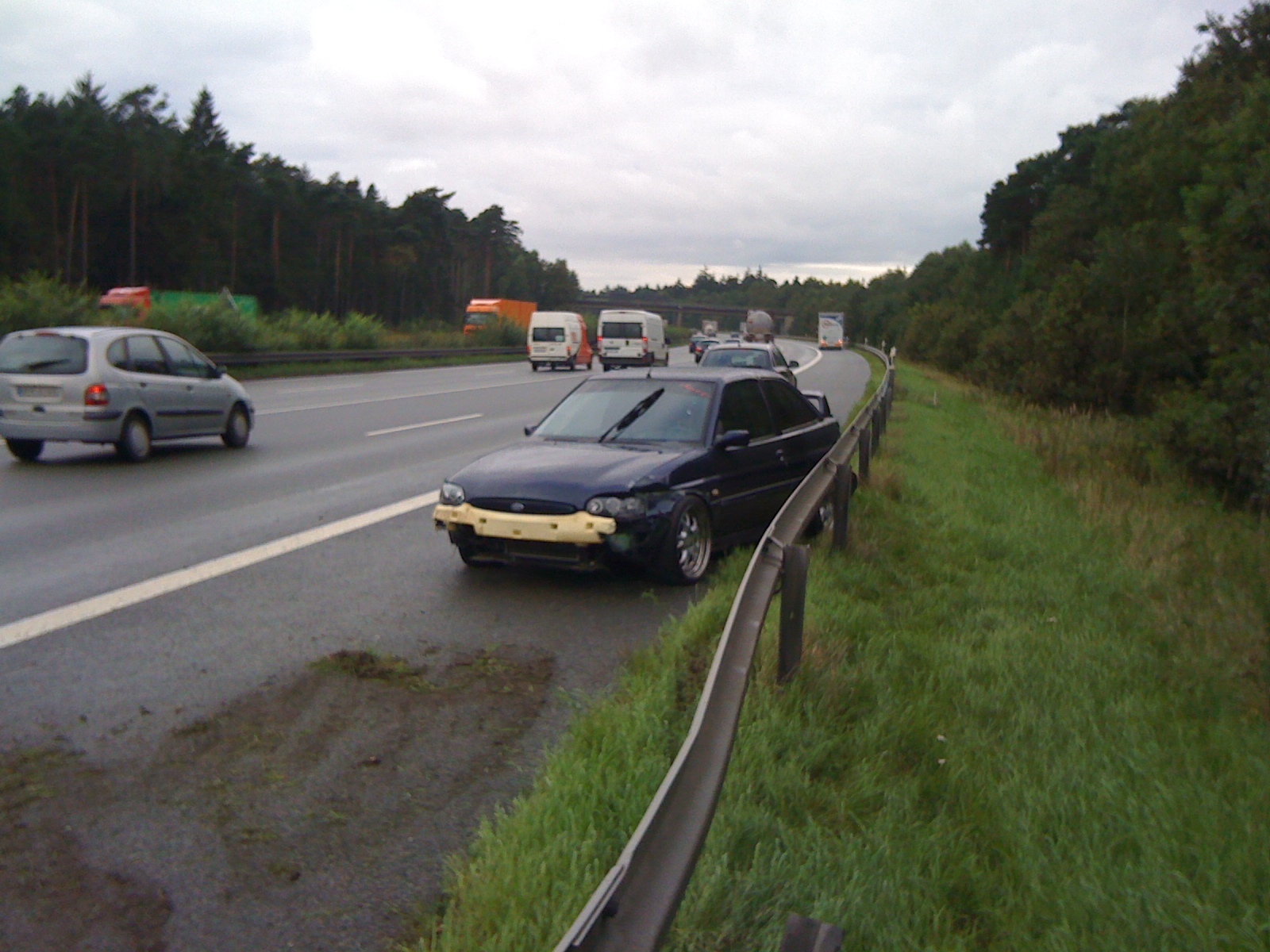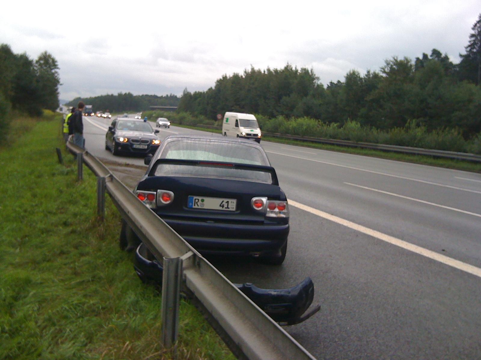 Ich hab ja davon nix mitbekommen, ging eben alles verdammt schnell, hatte keine Chance zum reagieren, es gab auch schon Leute, die haben mir gesagt: "Junge, wofür hattest du ein Fahrertrianing" na klar, bei 240 laut Tacho, und dann unerwartet, hatte das Lenkrad schon richtig fest in der Hand, aber gegen die Physik, was soll ich da machen? Ach was solls, hauptsache kein Personenschaden, Autos oder Leitplanken kann man ersetzen, wobei ich die 321,06€ für 10Km Abschleppen schon heftig finde ...